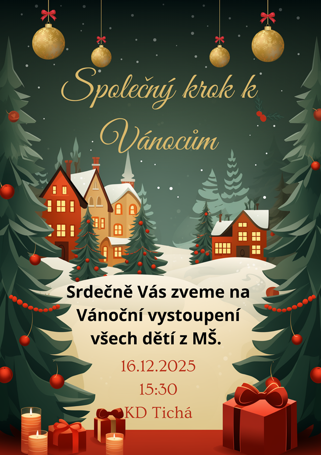V předvánočním čase se uskutečnila vánoční besídka naší mateřské školy, která byla letos výjimečná hned v několika ohledech. Všechny tři třídy vystoupily poprvé v prostorách kulturního domu a společně tak vytvořily krásný sváteční zážitek pro děti i jejich rodiny.