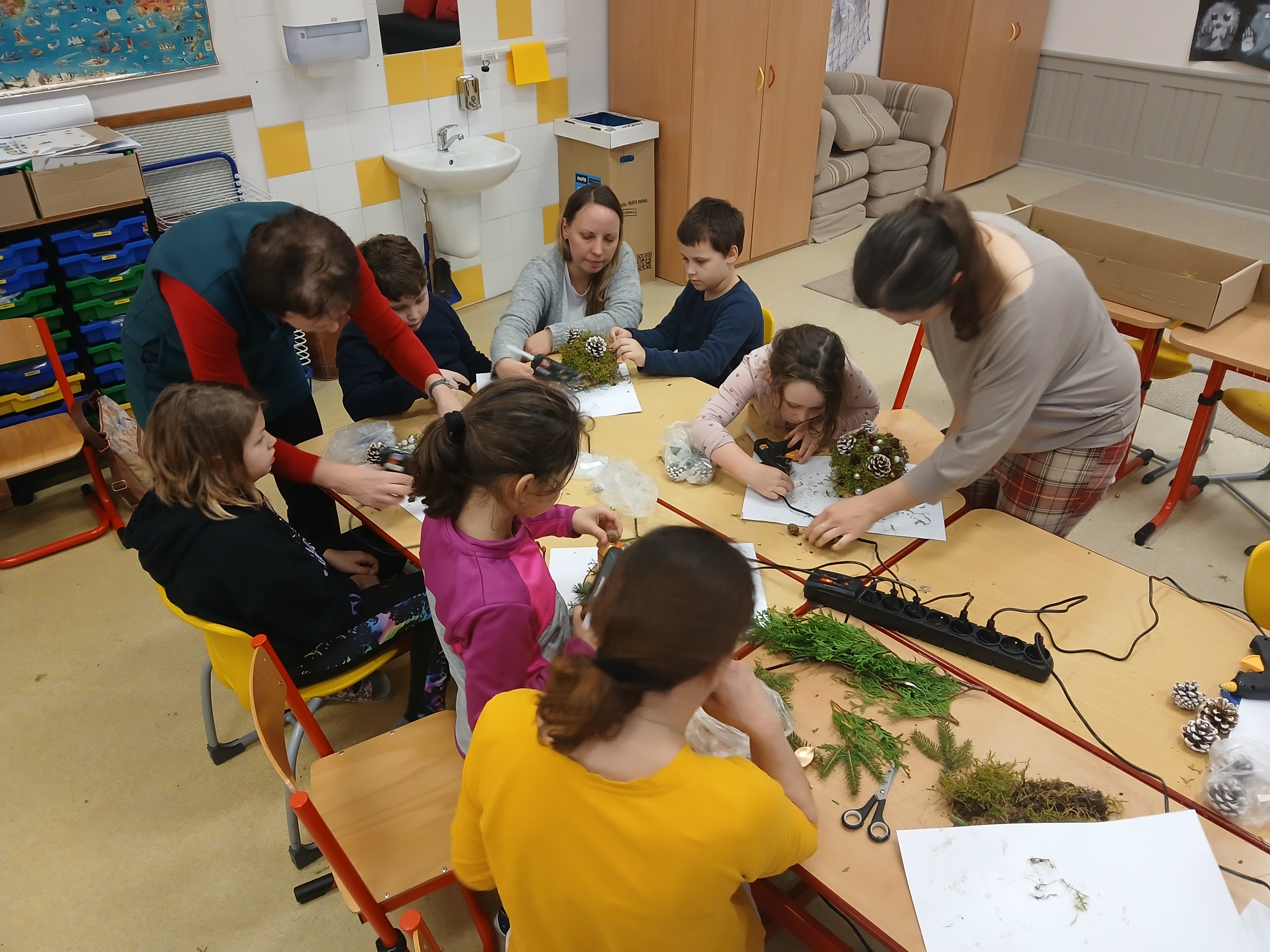 Ve školní družině jsme přivítali blížící se advent vánočním tvořením dětí a jejich rodin. Společně vznikaly netradiční adventní věnce i vánoční koule. Připraveno bylo mnoho ozdob, svíček, šišek, jehličí i světýlek, která dotvářela příjemnou předvánoční atmosféru.
