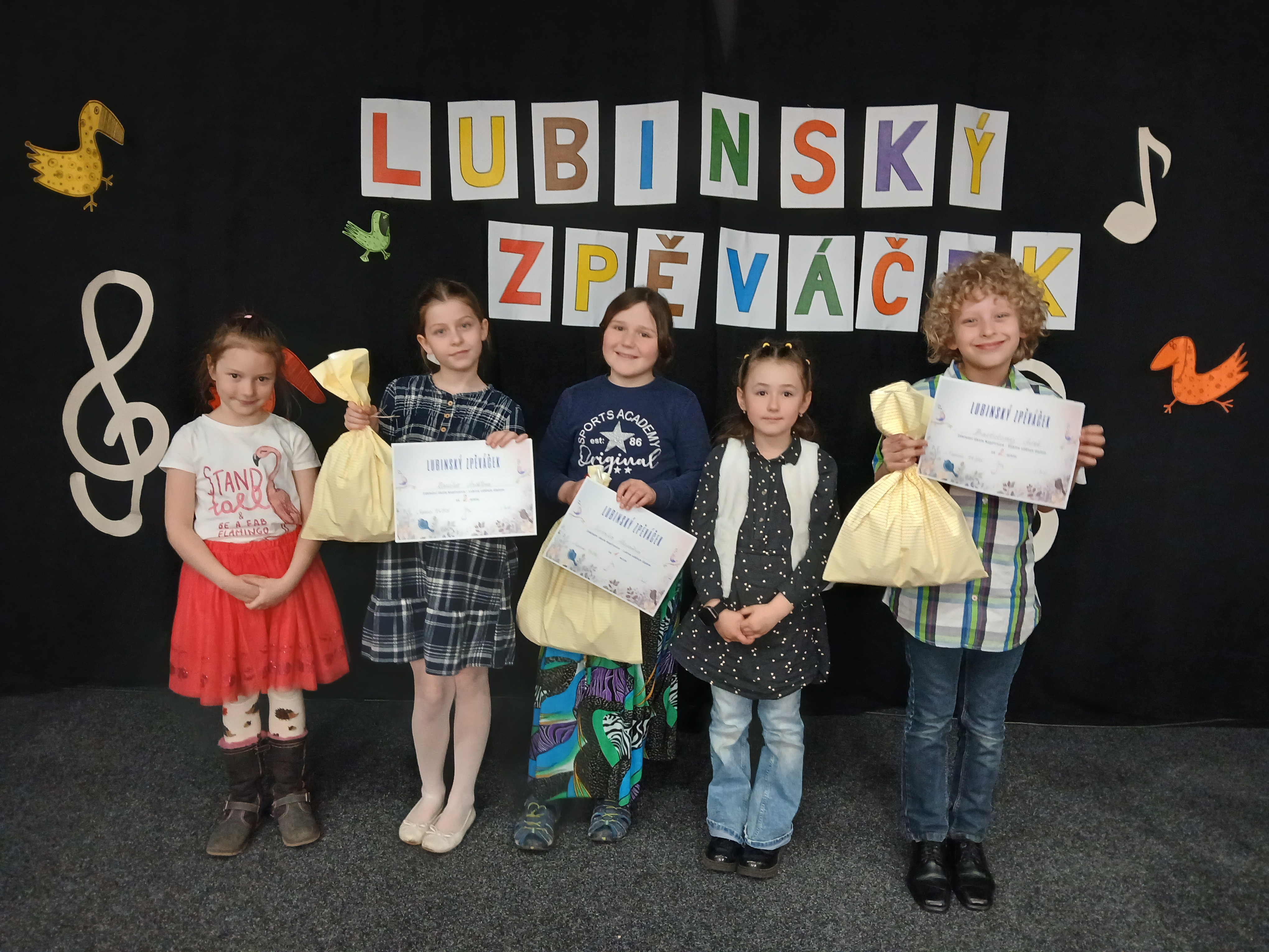 Děkujeme ZŠ Lubina za organizaci soutěže a všem zpěvákům za odvahu postavit se na pódium a zazpívat do mikrofonu.