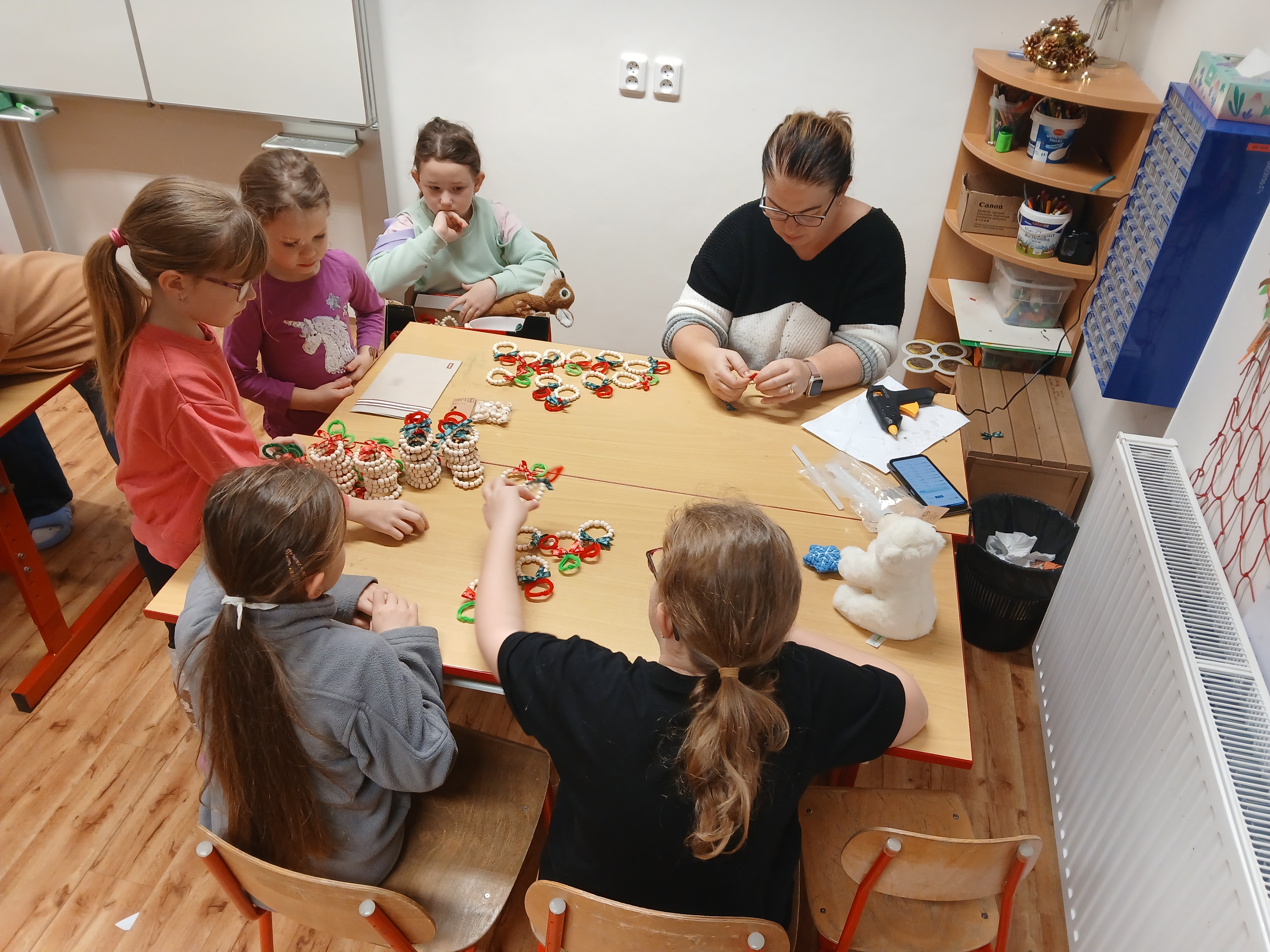 Ve školní družině jsme přivítali blížící se advent vánočním tvořením dětí a jejich rodin. Společně vznikaly netradiční adventní věnce i vánoční koule. Připraveno bylo mnoho ozdob, svíček, šišek, jehličí i světýlek, která dotvářela příjemnou předvánoční atmosféru.