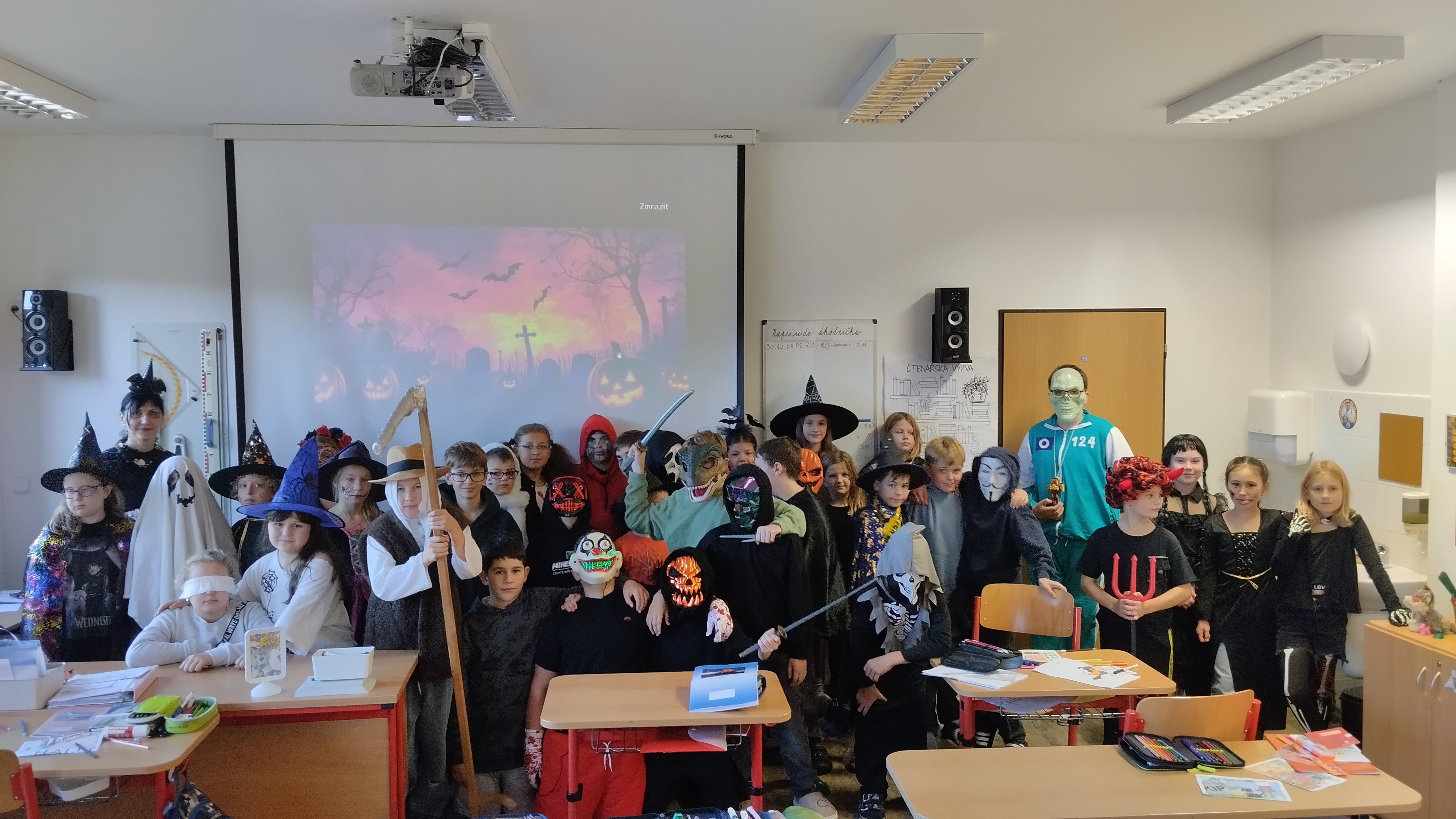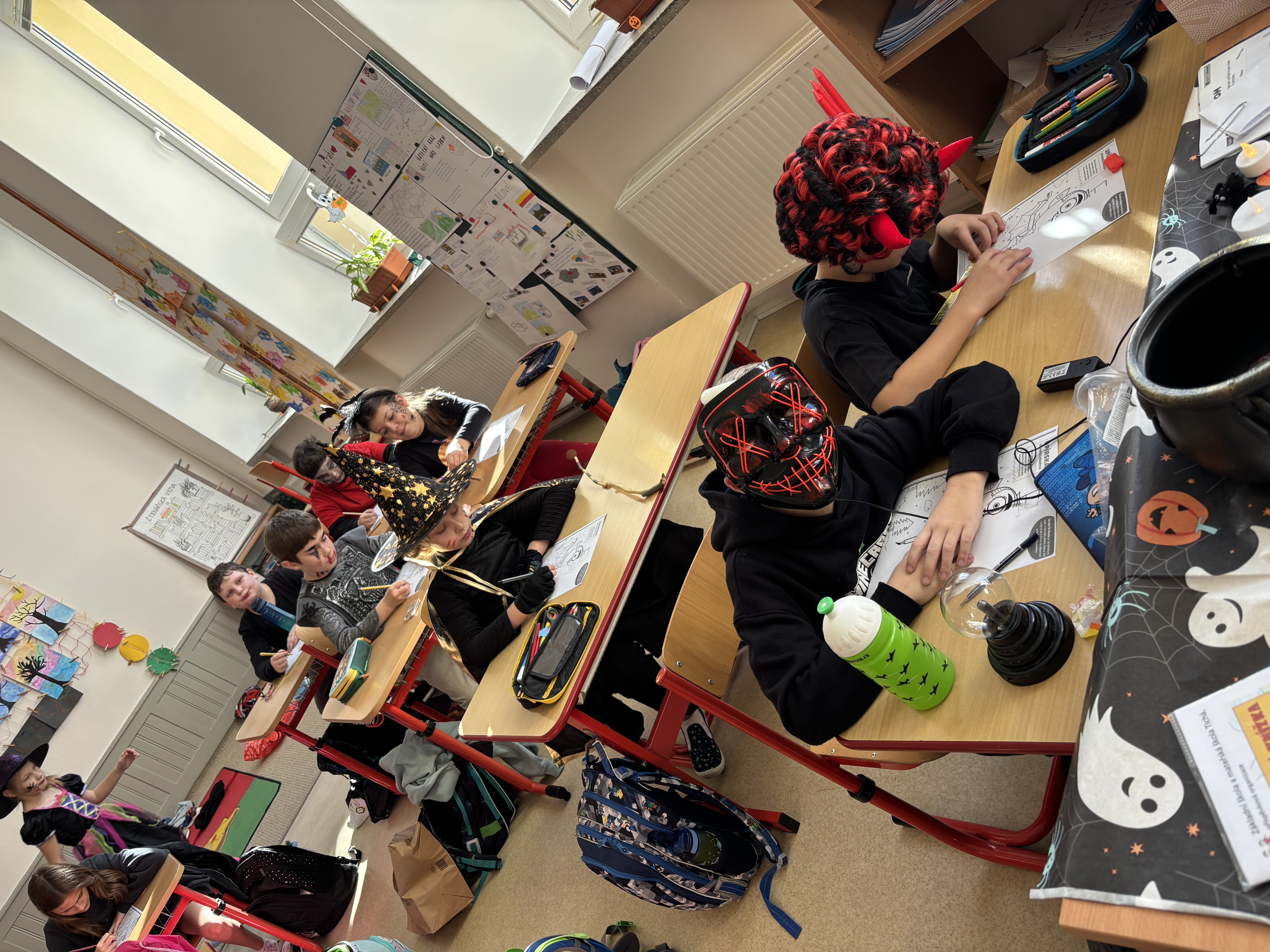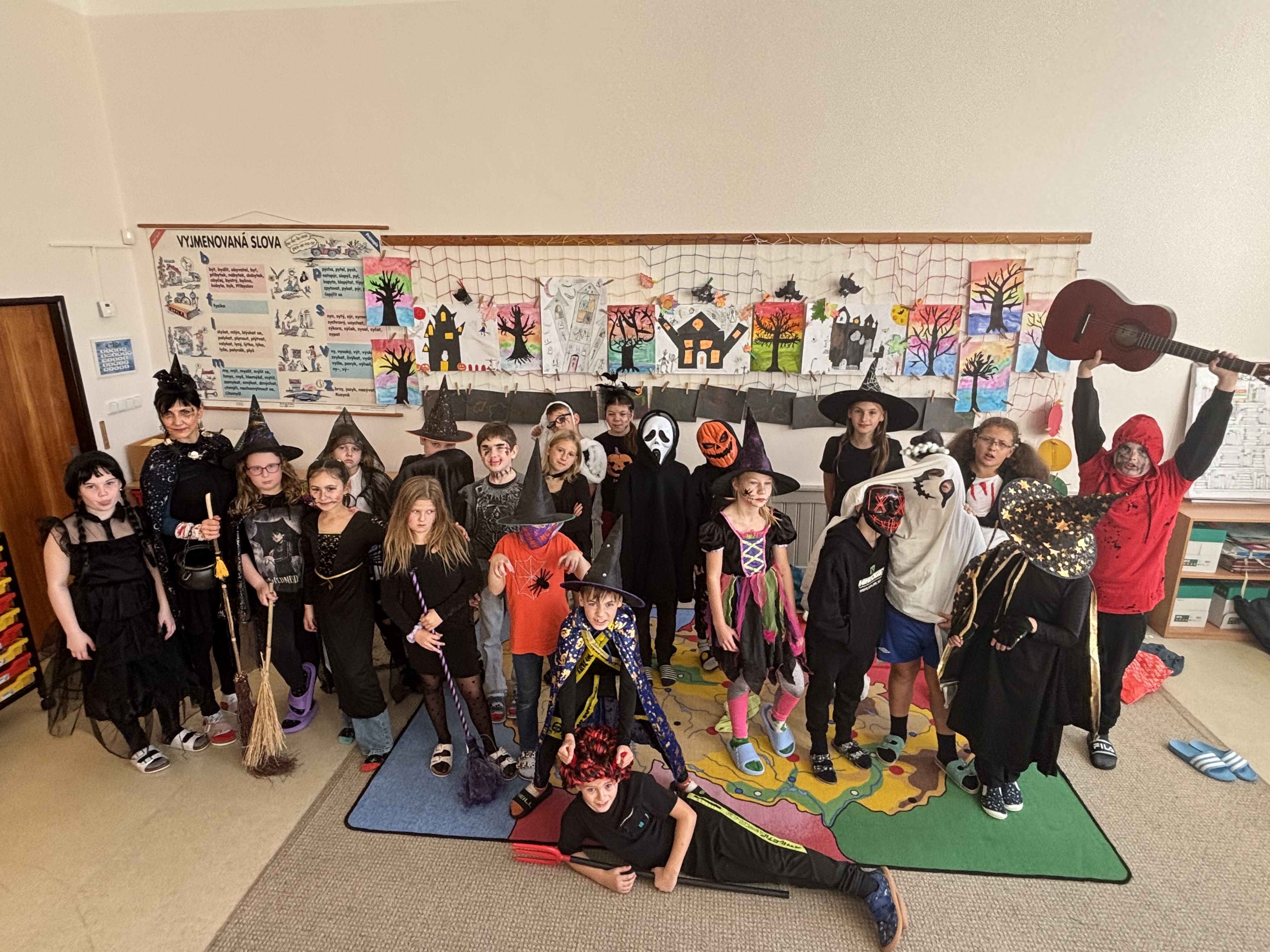 Škola je od vstupních dveří, přes třídy až po družinu plná pavučin, pavoučků, netopýrů, ozdob v podobě dýní, duchů, kostlivců a samozřejmě čarodějnic. I spousta žáků se rázem proměnila v učně kouzelnické školy a zpestřila si tak páteční výuku 31. října. Pestrou škálu dětí v kostýmech ze 4. třídy si tak mohly prohlédnout ostatní děti, protože je navštívily s danou kouzelnou formulí „Trick or treat!“, a společně s dětmi ozvláštnily hodinu anglickým říkankami. Vykoledovaly si něco dobrého, potěšily děti i dospělé a vyzkoušely si tak klasickou aktivitu populární nejen v anglicky mluvících zemích.