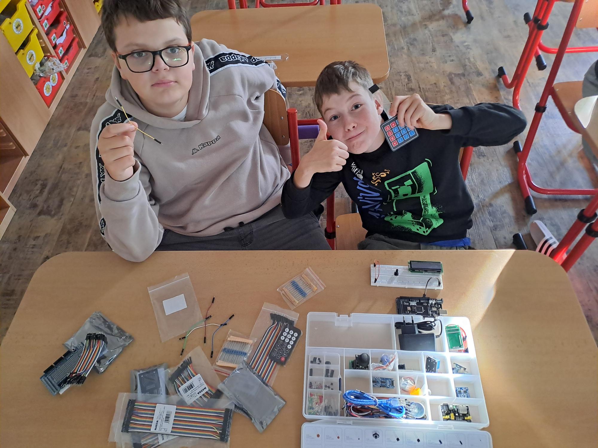 V letošním školním roce jsme kroužek nově rozšířili o stavebnice, díky nimž si mohou žáci převést své programy do reálné, hmatatelné podoby.